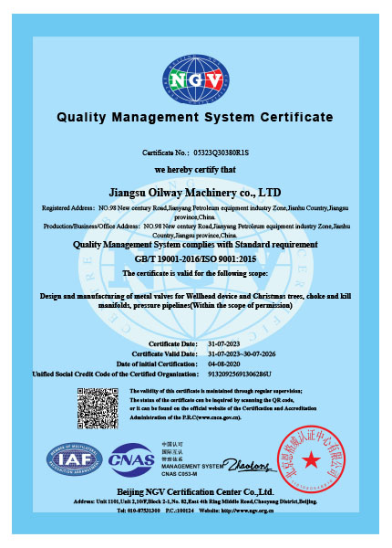Deliver the excel goods to guarantee the quality is the running blood for our service, we complied to ISO9001, ISO14001, OHSAS18001, our products certified with various international standards including API6A, API6D, API16A, API16C, API607, etc. which gives us the upper hand to understand the client's requirement, to deliver our fully supporting.